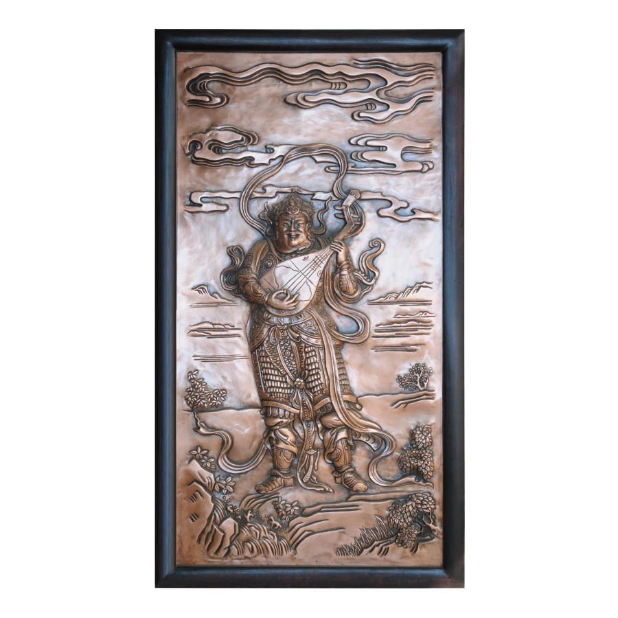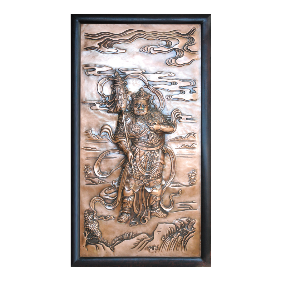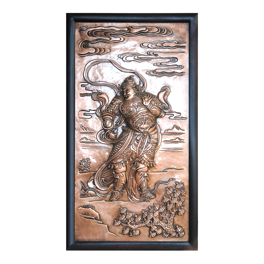 規(guī)格尺寸:?jiǎn)畏?00×490毫米,共四幅。 材質(zhì):紫銅 制作工藝:傳統(tǒng)手工鍛鏨