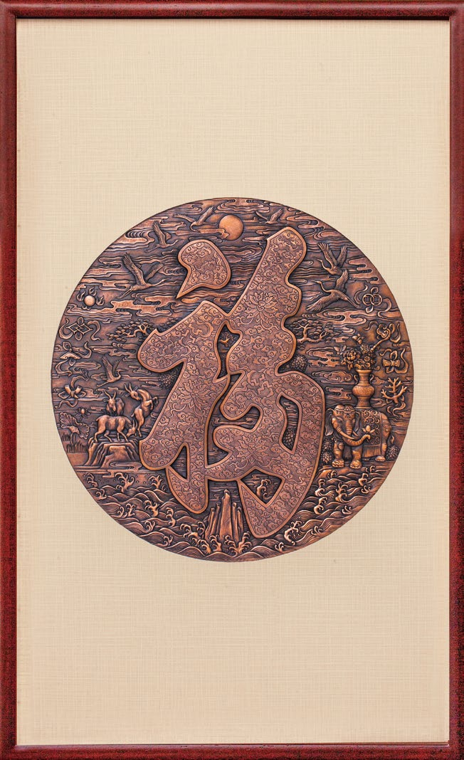 此紫銅壁畫采用非遺工藝——金屬鍛鏨——手工制作而成,做工精細,工藝精湛,形神俱備,堪稱精品。