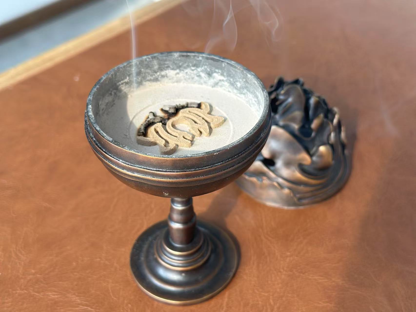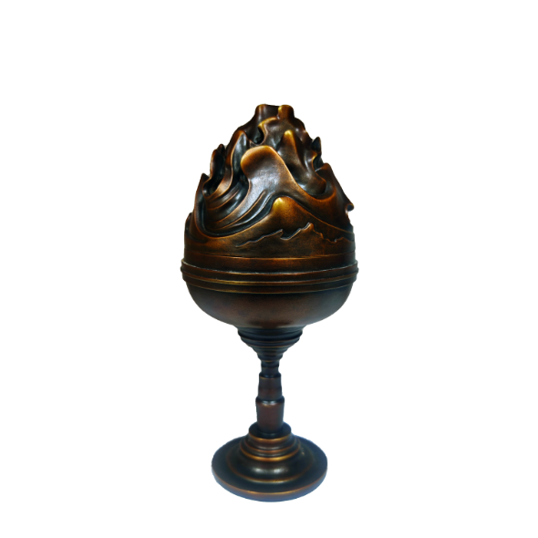 金屬公司出品的博山爐頂部高而尖,仿佛錯落分布的群山,匠人巧妙的借山勢鏤孔,當爐中的香料點燃時,香煙從鏤孔處裊裊而出,有如仙氣繚繞在山巒間,給人以置身仙境的感覺,加上幽香陣陣,使眼前的“仙境”不僅有形象,而且有氣味。除了焚香,博山爐還可以用來熏衣、熏被,以達到除味、避穢的效果。